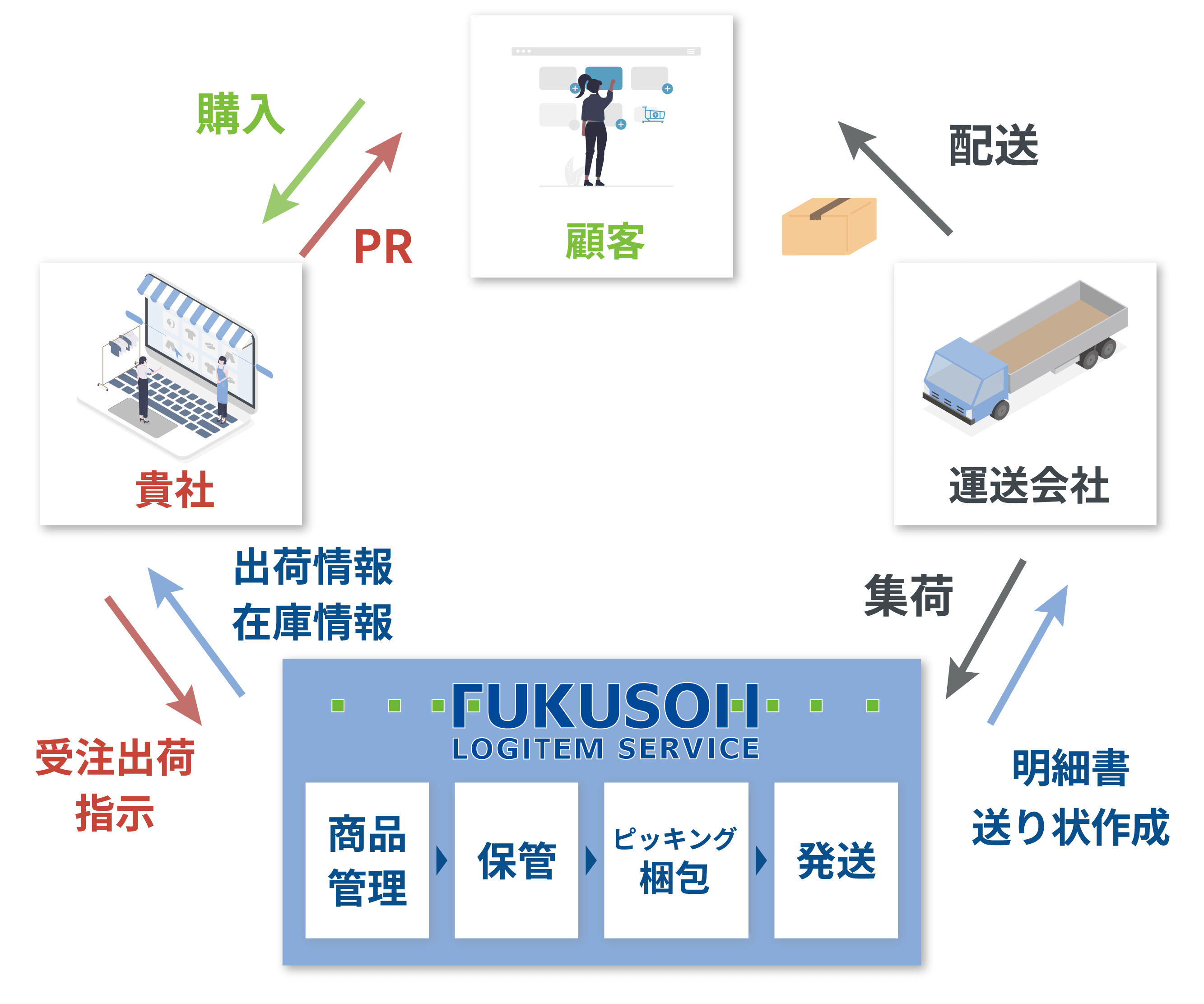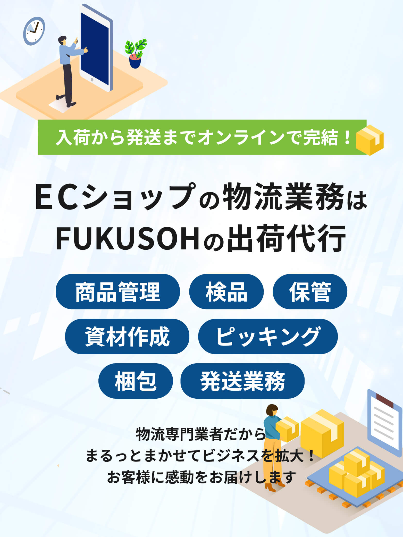 大切な人へ信頼と安心をお届けします。FUKUSOHはお客様の物流センターとしてビジネスのお手伝いをいたします。